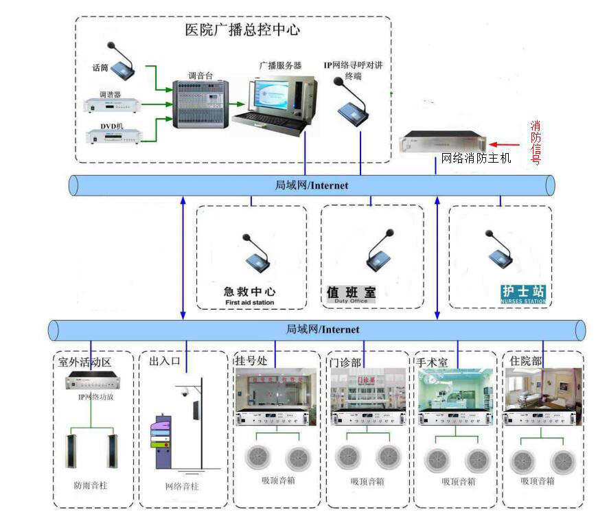如需擴(kuò)展系統(tǒng),在有網(wǎng)絡(luò)接口的地方,直接增加終端、功放、喇叭等即可接入系統(tǒng)。